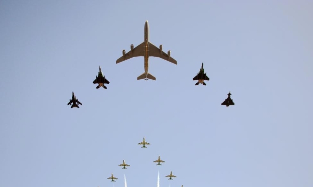 這是9月23日在沙特阿拉伯首都利雅得拍攝的國慶日的煙花。