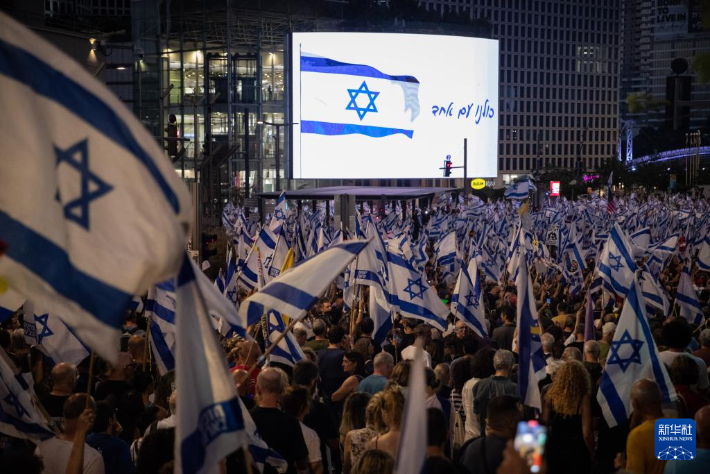 6月22日,以色列民眾在特拉維夫參加集會。 當日,約15萬以色列民眾在特拉維夫舉行集會,要求總理內塔尼亞胡下臺并提前舉行議會選舉,同時呼吁以政府盡快與哈馬斯簽訂停火協議,解救以方被扣押人員。 新華社記者 陳君清 攝